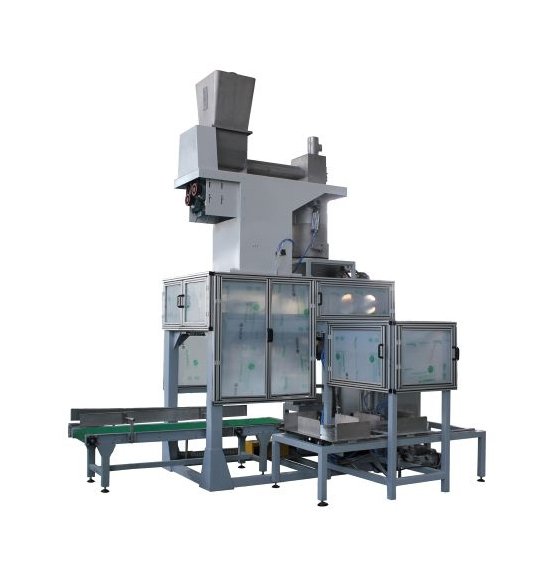 我公司针对农化、食品等行业粉状物料包装而研制的新型包装机组。该机组具有自动供袋、上袋、填充、送包、封口等功能。可与各类粉体物料设备联动工作,实现大规格包装无人化生产作业。